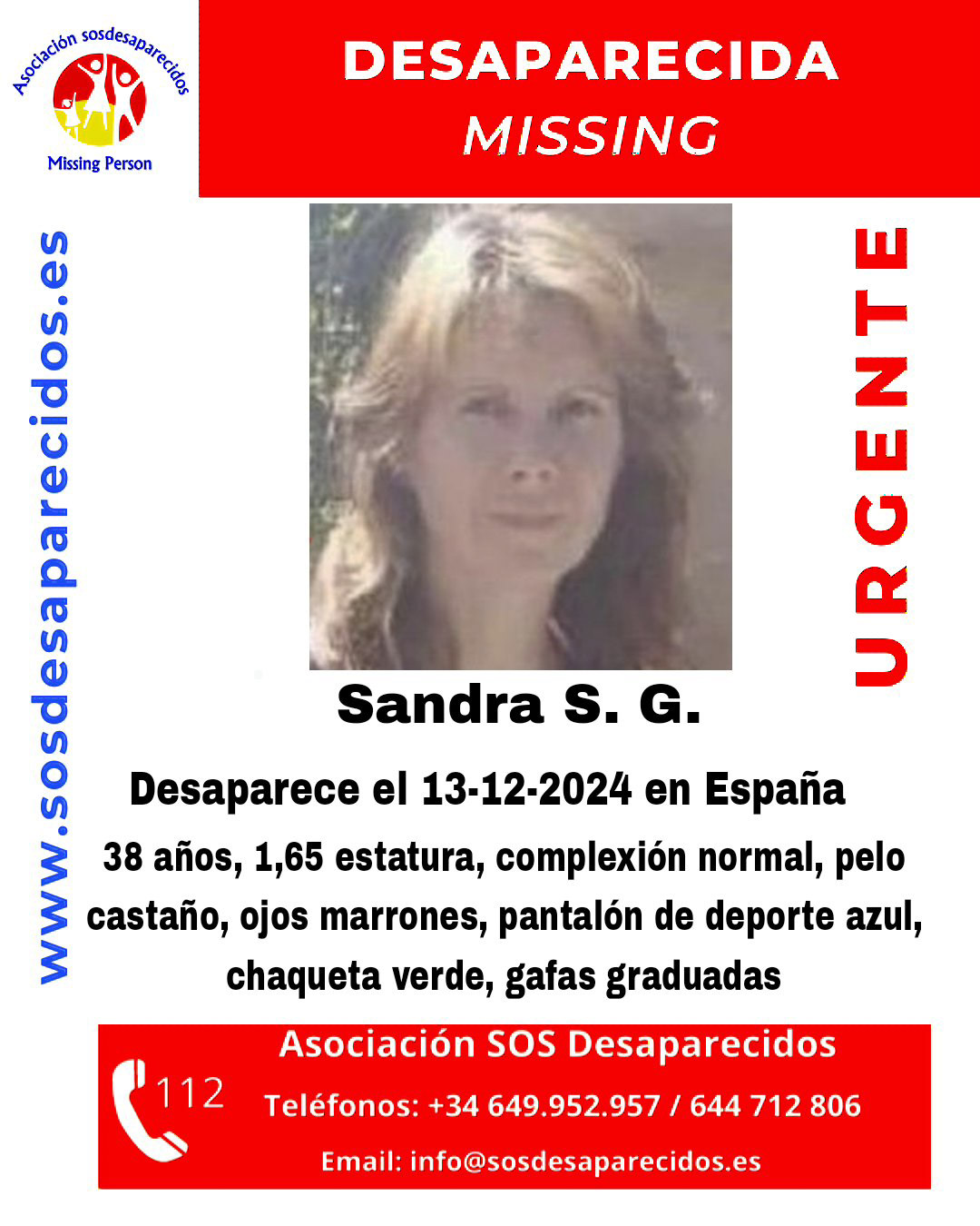 Según consta en el cartel que difunde el Centro Nacional de Desaparecidos a través de sus redes sociales, en un mensaje consultado por Europa Press, la mujer vista por última vez en Albolote mide 1,65 metros, pesa 50 kilos, y tiene pelo castaño y ojos de color marrón.