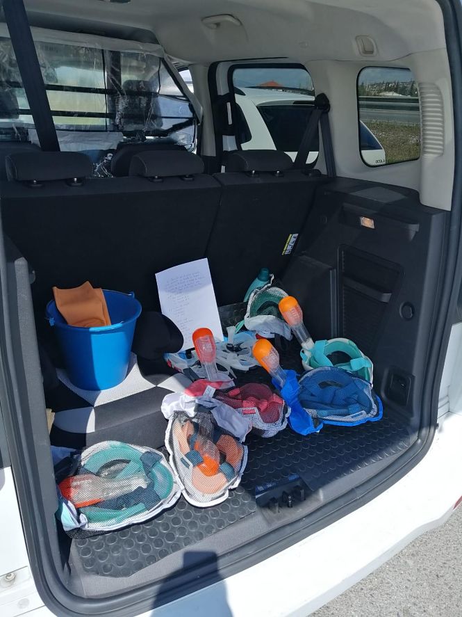 Taxista recogiendo máscaras de Snorkel (AYTO. MONACHIL)