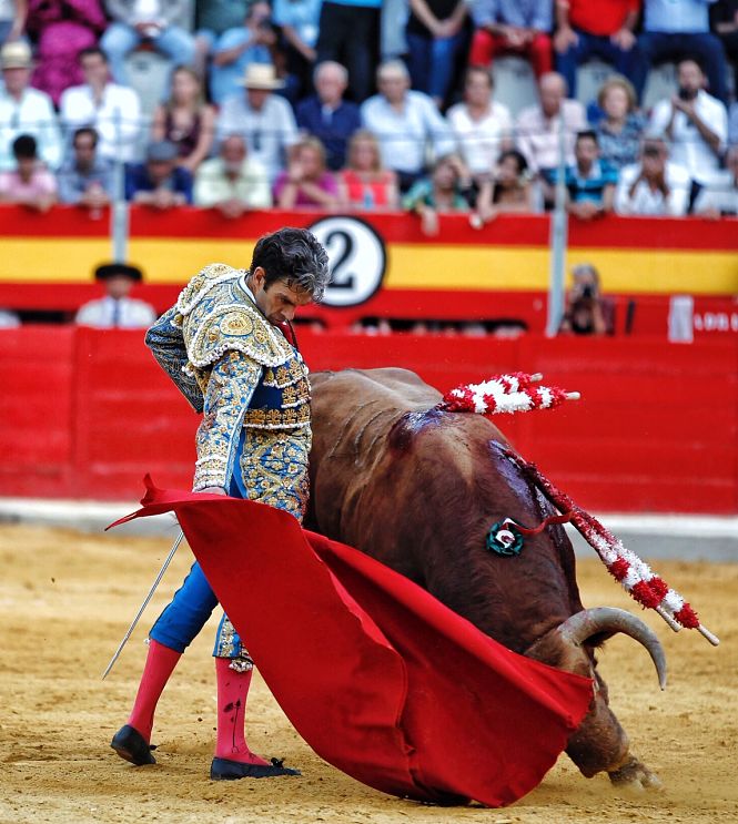 Todavía quedaban dos toros más para el de Galapagar. En quinto lugar salió el de El Pilar. Faena de oficio ante un animal que se terminó pronto. José Tomás se lo pasó cerca. Estocada tendida y descabello. Saludos.