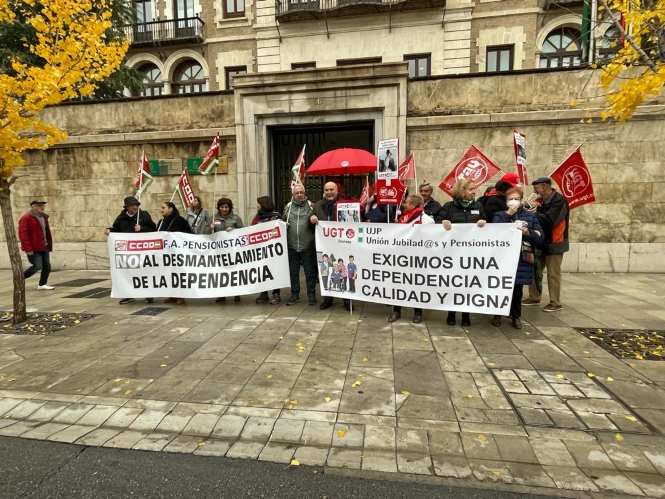 La Unión de Jubilados y Pensionistas (UJP) de UGT Granada y la Federación de Pensionistas y Jubilados de CCOO de Granada, han celebrado este miércoles, 14 de diciembre, una concentración frente a la sede del gobierno de la Junta de Andalucía en Granada, que es la que tiene las competencias en esta materia, para reclamar una atención a la dependencia de calidad y residencias dignas y suficientes, para dignificar a las personas mayores y garantizar su bienestar.