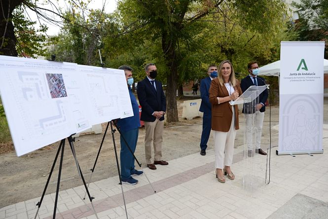 La consejera de Fomento, Infraestructuras y Ordenación del Territorio, Marifrán Carazo, ha presentado a los vecinos de la plaza María Josefa Recio, en Almanjáyar, los detalles del proyecto de reurbanización de dicho espacio y sus alrededores, que acaba de ser contratado con un presupuesto de 534.857 euros. Marifrán Carazo ha anunciado a los vecinos el inicio de las obras en los próximos días, comprometiendo su finalización en seis meses. Es la primera vez desde que se construyeron estos pisos, en 1983, que se mejoran sus espacios públicos.