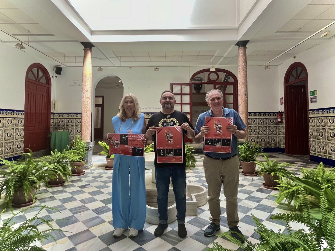 La XI edición de los Patios Flamencos se inaugurará con la actuación de José Valencia, acompañado a la guitarra por Juan Requena, el próximo 12 de julio a las 21:30 horas en el Parque de los Pueblos de América. La segunda cita será el 19 de julio también a las 21:30 horas, pero, esta vez en la Plaza de España, de la mano de Felipa del Moreno junto al guitarra José Gálvez. Además de las dos veladas pertenecientes a la XI edición de los Patios Flamencos, el Área de Cultura ha presentado otra velada flamenca que acompañará a estas dos, siendo el día 13 de julio a las 21:30 horas en el Parque de los Pueblos de América.