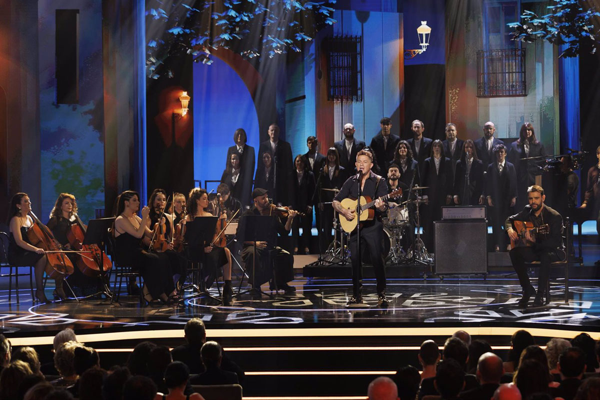 Alejandro Sanz cantando uno de los temas más populares de Triana, 'Abre la Puerta', con el acompañamiento de la Orquesta y el Coro de la Universidad de Granada, han sido otros de los espectáculos musicales con aportación de la provincia en una gala con referencias también a García Lorca o al cantautor Carlos Cano, entre otros emblemáticos personajes granadinos.