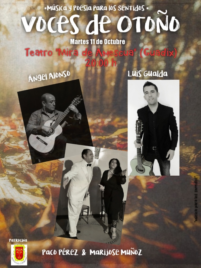 El área de Mayores de la concejalía de Servicios Sociales, representada por Encarni Pérez, organiza el próximo 11 de octubre a las 20:00 horas en el Teatro Mira de Amescua el espectáculo músico-poético intergeneracional titulado “Voces de Otoño” a cargo de los rapsodas Mari Jose Muñoz y Paco Pérez acompañados por los músicos Luis Gualda y Ángel Alonso. La entrada será libre y gratuita hasta completar aforo.