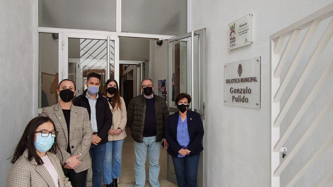 También esta mañana se ha procedido a oficializar el acuerdo tomando en Pleno Municipal de poner nombre a la biblioteca municipal, recientemente modernizada y provista de nuevo material y mobiliario. Desde hoy, la biblioteca municpal de Huéscar, luce el nombre de Gonzalo Pulido. A tal efecto se ha descubierto una placa conmemorativa en la puerta de dicha biblioteca, acto al que han asistido la alcaldesa, Soledad Martínez, la concejala de cultura, Alicia Rodríguez, el concejal de educación, José Izquierdo y otros miembros del equipo de gobierno.