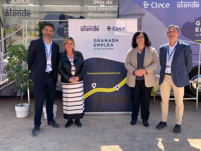 La Ruta 'Granada Emplea' ha comenzado hoy en Granada y finalizará el viernes 24 en Cúllar Vega; en las cinco paradas se realizarán más de 500 entrevistas personales para 120 puestos de trabajo. El empleo vincula a las personas con la sociedad y fomenta el desarrollo de la economía en las que viven. Con la ruta 'Granada Emplea', Atende quiere contribuir a este desarrollo. Hasta el autobús donde el equipo de Selección de Clece realiza las entrevistas personales a los posibles candidatos y candidatas se acercaron las concejalas de Derechos Sociales del Ayuntamiento de Granada, Nuria Gutiérrez Medina, y la concejala de Empleo, Sandra Rodríguez Salas. "Es de agradecer esta iniciativa que está devolviendo la ilusión a las personas desempleadas y que hace especial hincapié en las que provienen de colectivos vulnerables", afirmó Nuria Gutiérrez. Mientras que la concejala de Empleo enunció que no hay mejor forma "celebrar que Atende, la marca andaluza de Clece, gestione la búsqueda de empleo de toda la población. Además, hacen un esfuerzo extra por llegar a las personas que les cuesta más acceder a un empleo. Desde el área Emprendimiento y Empleo les damos las gracias y aquí está el Ayuntamiento para lo que necesiten".
