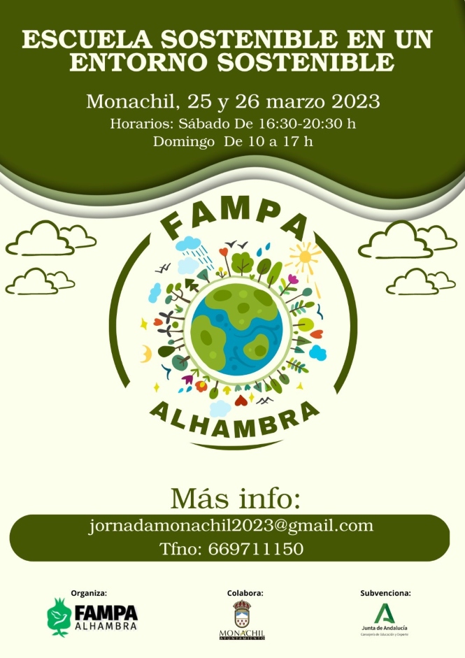 FAMPA Alhambra celebra este fin de semana las jornadas„Escuela sostenible en un entorno sostenible‟, una cita pensada para analizar y debatir sobre la sostenibilidad de los centros educativos de la provincia. La actividad, que se celebra en Monachil el sábado y domingo, contará con personas expertas en movilidad, urbanismo y medio ambiente, además de representantes de distintas AMPA de la provincia que darán a conocer ejemplos de proyectos sostenibles en sus colegios.