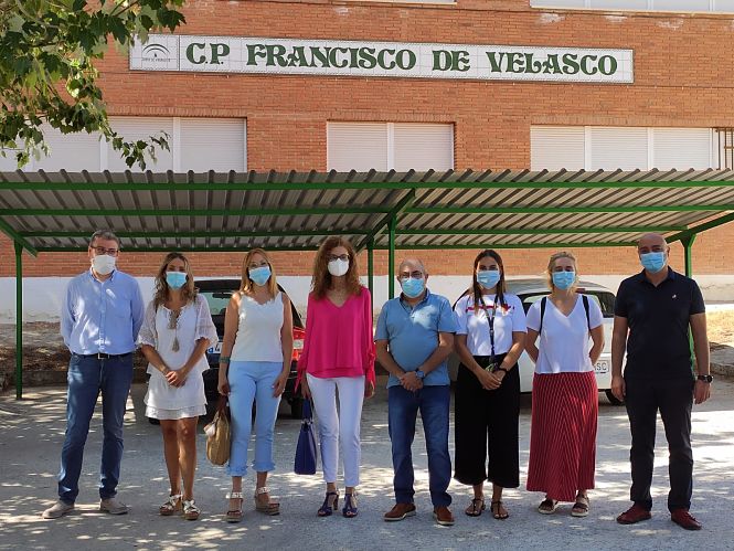 La delegada de Igualdad, Políticas Sociales y Conciliación, Ana Berrocal, ha visitado el Colegio de Educación Infantil y Primaria "Francisco de Velasco" de Baza, sede de una de las ocho escuelas de verano de la provincia de Granada.
