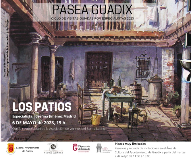 La concejalía de Cultura del Ayuntamiento de Guadix, representada por Encarni Pérez, organiza una nueva sesión del programa Pasea Guadix, puesto en marcha en colaboración con el Centro de Estudios Pedro Suárez y la Delegación de Cultura y Memoria Histórica y Democrática de la Diputación de Granada. La cita tendrá lugar el próximo sábado 6 de mayo y visitará los patios accitanos en colaboración con la Asociación de vecinos del Barrio Latino.