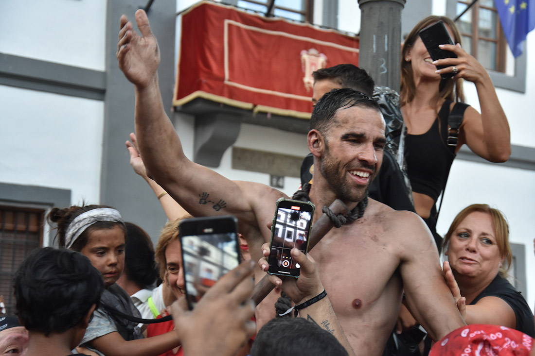 Miles de personas acompañan como es tradición en la tarde de este viernes tras escucharse el tercer cohete la salida de la carrera del Cascamorras, este año José Heras, desde el paraje de Las Arrodeas, en el prólogo de la Feria y Fiestas de Baza, una celebración Fiesta de Interés Turístico Internacional en la que este año se ha reforzado el dispositivo de seguridad al coincidir con el inicio del fin de semana.