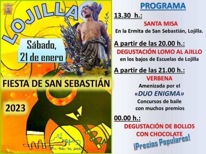 Así, la jornada del sábado comenzará con la tradicional misa en honor a San Sebastián (a las 13,30 horas) en la Ermita de Lojilla, un templo restaurado hace ocho años, y posteriormente sacarán al Santo en procesión.