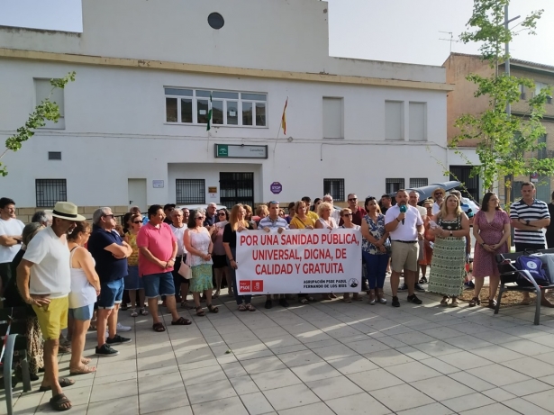 Alcaldes y representantes municipales del Valle de Lecrín se han concentrado junto a la ciudadanía en la puerta del centro de salud del Padul como protesta por los recortes sanitarios que ha llevado a cabo la Junta en una época, como la estival, que aumenta la población de la zona.