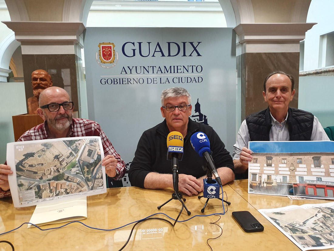 El alcalde de Guadix, Jesús Lorente, el concejal de Urbanismo, Joaquín Valverde y el concejal de Hacienda, Pedro Gabriel Rus, han dado cuenta esta mañana de uno de los asuntos más importantes que se llevarán al pleno ordinario del mes de mayo a celebrar el próximo martes, una modificación de crédito en la modalidad de crédito extraordinario financiado por lo remanentes de tesorería por importe de 1.205.168,76 euros, con los cuales se llevarán a cabo importantes inversiones para la mejora del entorno y especialmente enfocadas a la conservación del patrimonio.