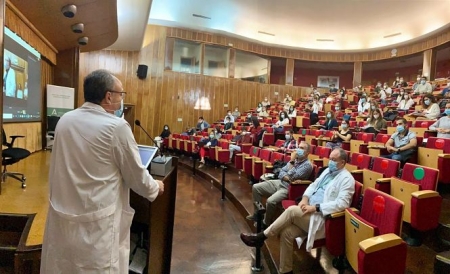 Al acto de bienvenida, celebrado entre estrictas medidas de seguridad, ha asistido el delegado de Salud y Familias, Indalecio Sánchez Montesinos, quien ha estado acompañado por la directora gerente, María Ángeles García Rescalvo, el director médico, Sebastián Manzanares y el jefe de estudios, José Hornos, facultativo especialista de otorrinolaringología que se incorpora a este puesto de responsabilidad desde hoy.