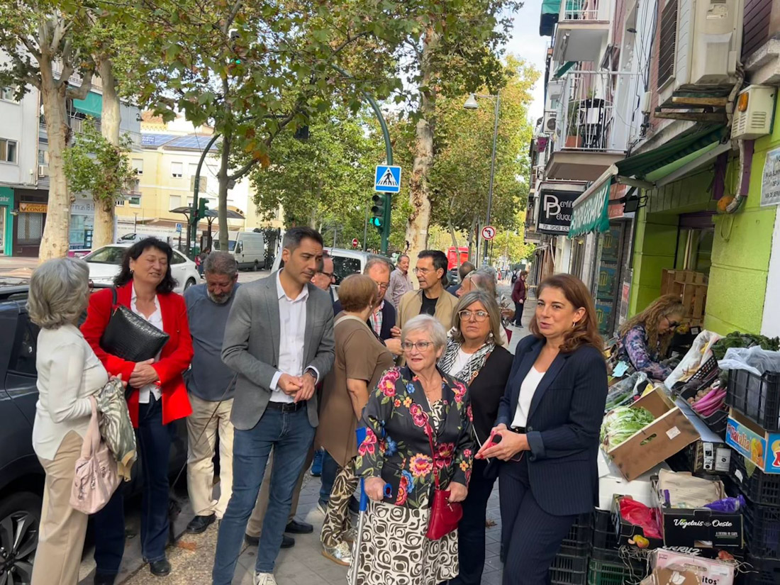 Concejales del Grupo Municipal Socialista, liderados por la portavoz Raquel Ruz, visitaron este jueves la Avenida Cervantes para reunirse con vecinos y comerciantes ante la próxima y polémica remodelación de la vía anunciada por el Gobierno de Marifrán Carazo.