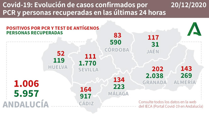 Los mejores datos diarios llegan en los curados, tras haber superado la enfermedad 2.038 granadinos en un día. 38.319 personas han superado la enfermedad en Granada y provincia.