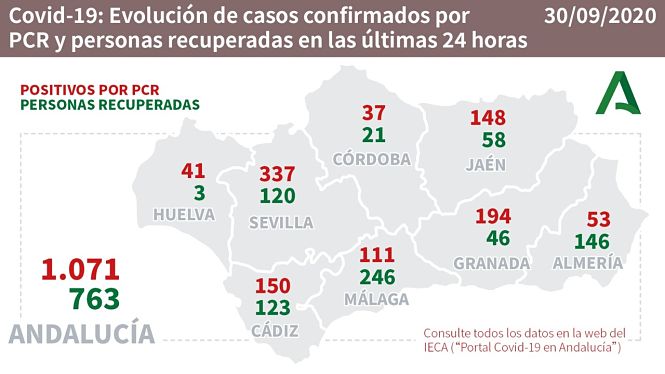Granada ha superado su tope de contagios tras registrarse 194 en un solo día, dato que indica que la pandemia está lejos de controlarse. Granada ha sido la provincia andaluza con mayor número de positivos diarios, solamente superada por Sevilla. Ya son 7.480 personas las que han sido infectadas de coronavirus en la provincia de Granada.