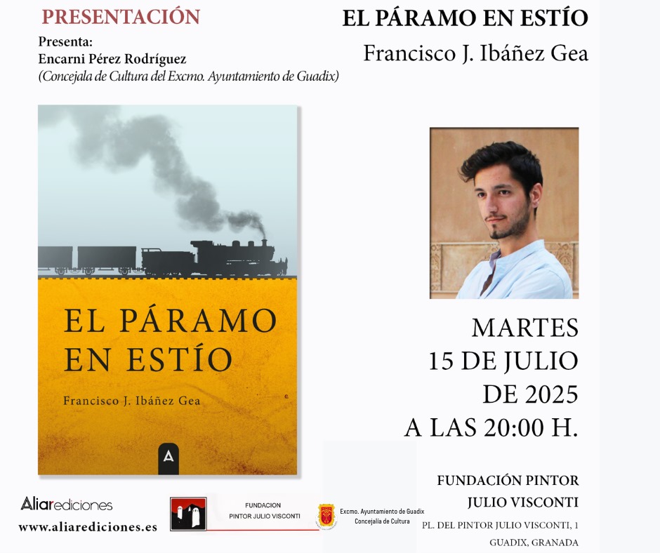 La Fundación Pintor Julio Visconti de Guadix acogerá el próximo martes 15 de julio la presentación de “El páramo en estío”, la nueva obra del autor accitano Francisco J. Ibáñez Gea. El acto, que dará comienzo a las 20:00 horas y será de acceso libre hasta completar aforo, contará con la intervención de la concejala de Cultura, Encarni Pérez, y se enmarca en el compromiso municipal por la difusión del patrimonio cultural y la memoria local.