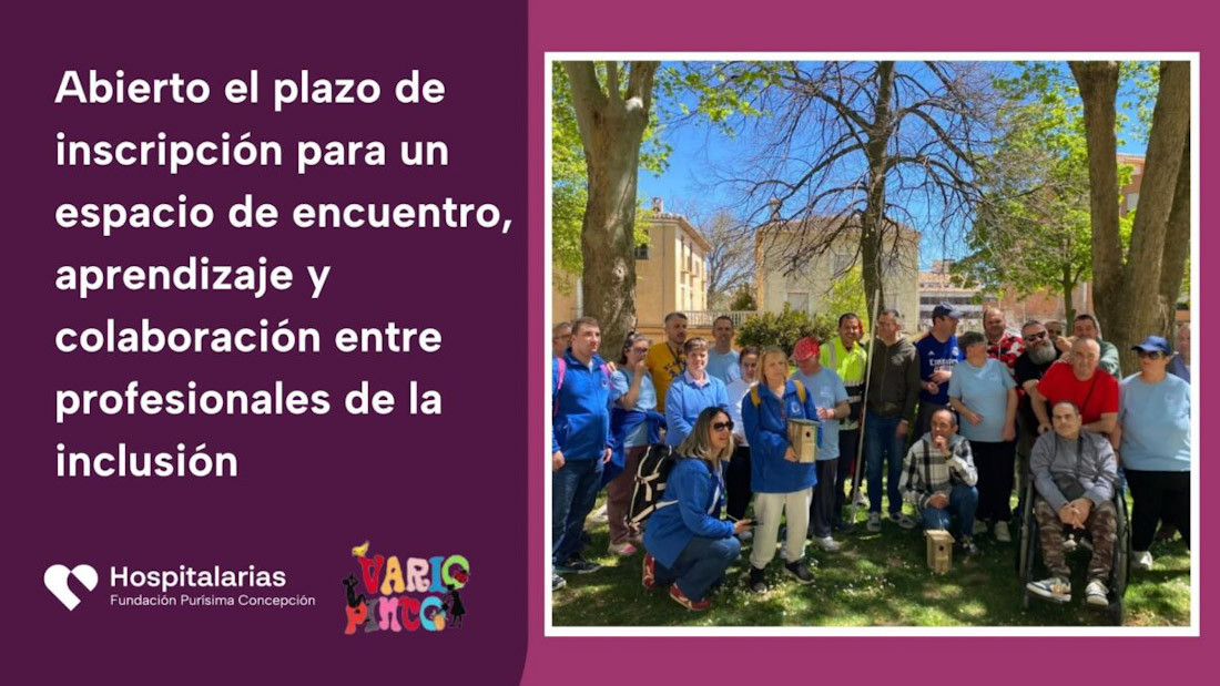 Hospitalarias Fundación Purísima Concepción ha abierto las inscripciones para el Encuentro Técnico Vario Pinto, una jornada dirigida a profesionales del ámbito social, educativo y ambiental. El encuentro se celebrará el 20 de mayo en el centro Ecoparque, en horario de 10.00 a 13.30 horas.
