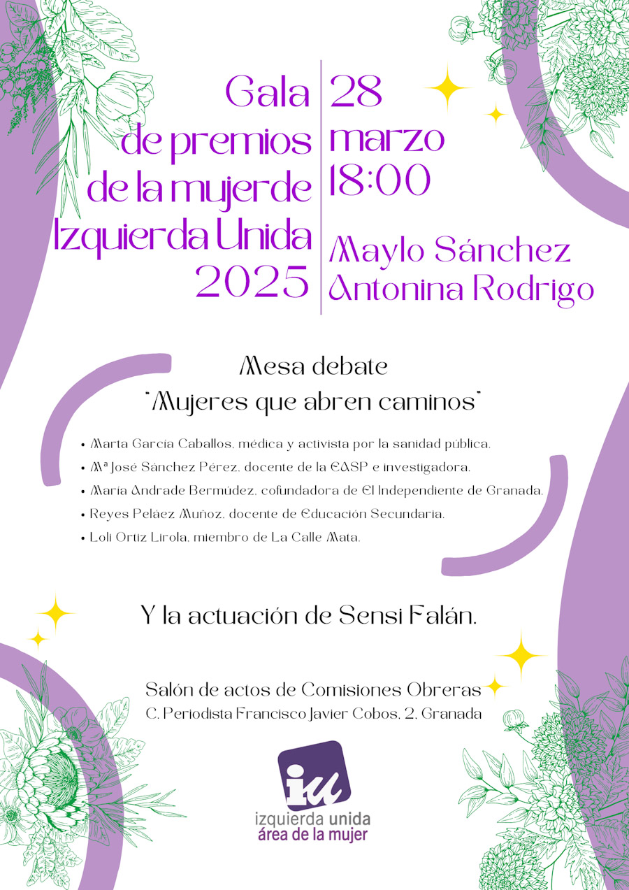Desde IU Granada animan a la ciudadanía a participar en esta gala, que pretende ser un homenaje y un reconocimiento a la lucha colectiva de las mujeres en todos los ámbitos.