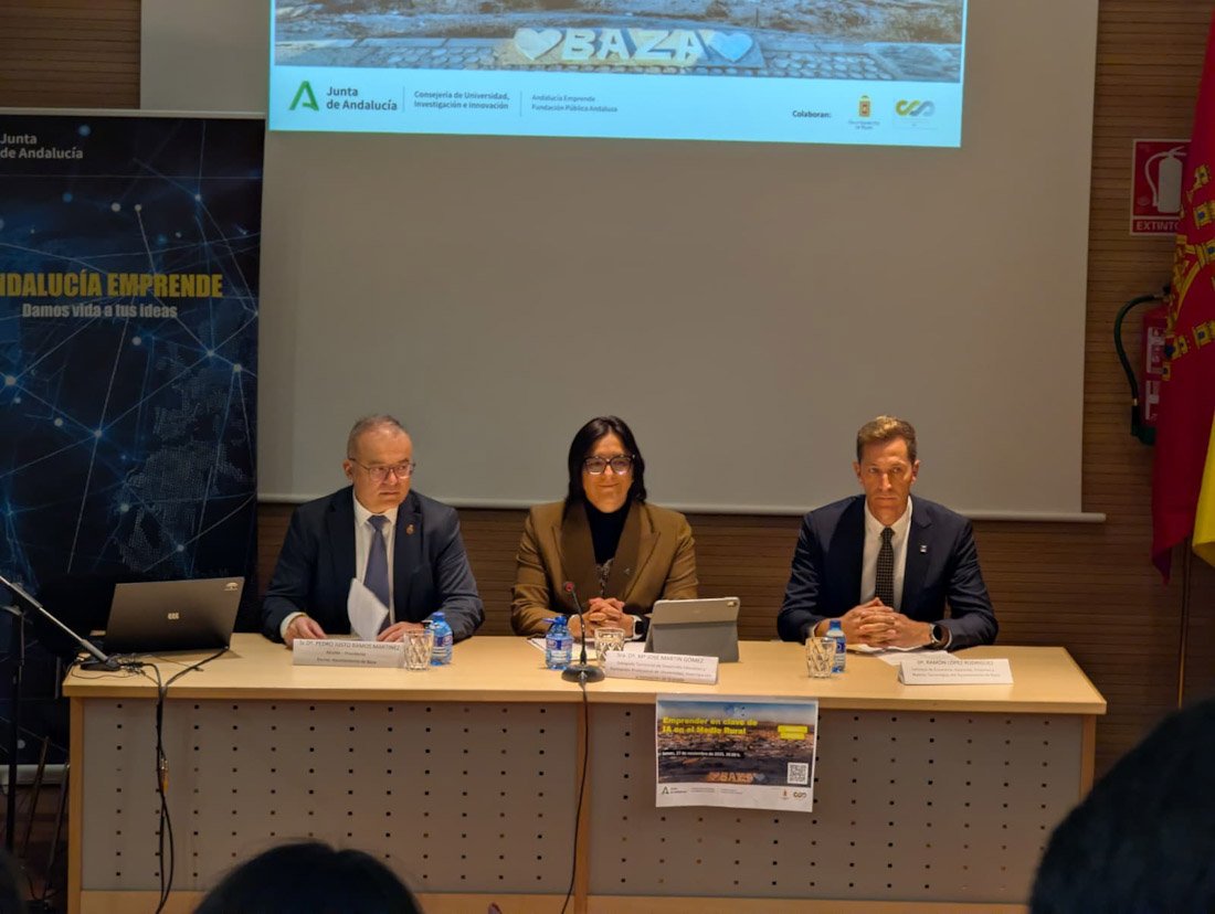 La delegada territorial de Desarrollo Educativo y Formación Profesional y de Universidad, Investigación e Innovación en Granada, María José Martín, y el alcalde de Baza, Pedro Justo Ramos, han inaugurado hoy en este municipio un ciclo de jornadas formativas tituladas 'Emprender en clave de IA en el medio rural', organizado por Andalucía Emprende con la finalidad de acercar la digitalización y la inteligencia artificial a los territorios rurales de la provincia de Granada.