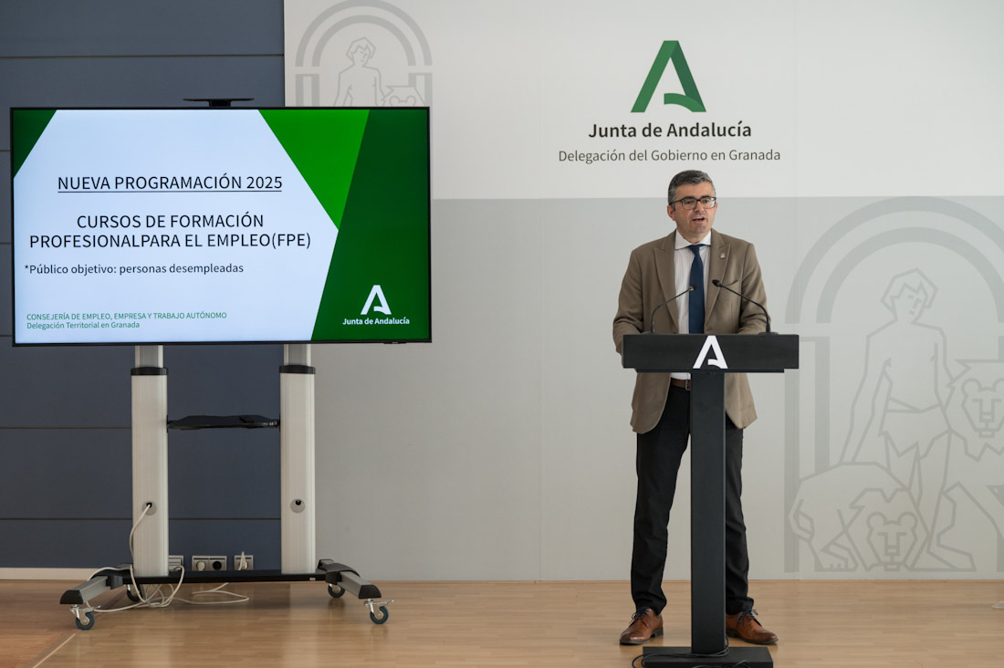 El delegado territorial de Empleo, Empresa y Trabajo Autónomo de la Junta de Andalucía en Granada, Javier Martín Cañizares, ha presentado esta mañana la nueva programación de cursos de Formación Profesional para el Empleo (FPE), la mayor oferta de acciones formativas dirigidas a desempleados de la provincia de la última década. La programación, que se desarrollará durante este año, consta de más de 600 cursos gratuitos, 9.000 plazas y una inversión que supera los 14,5 millones de euros.
