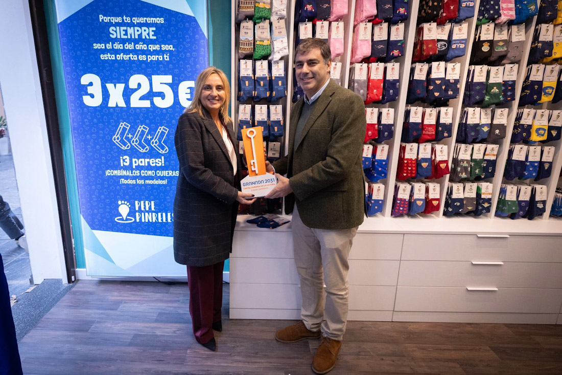 Con la colección de calcetines inspirados en Granada 2031, disponible en su tienda en el centro de la capital granadina, Pepe Pinreles manifiesta públicamente "su compromiso con la cultura y con el futuro de la ciudad", han agregado desde el consistorio este jueves.