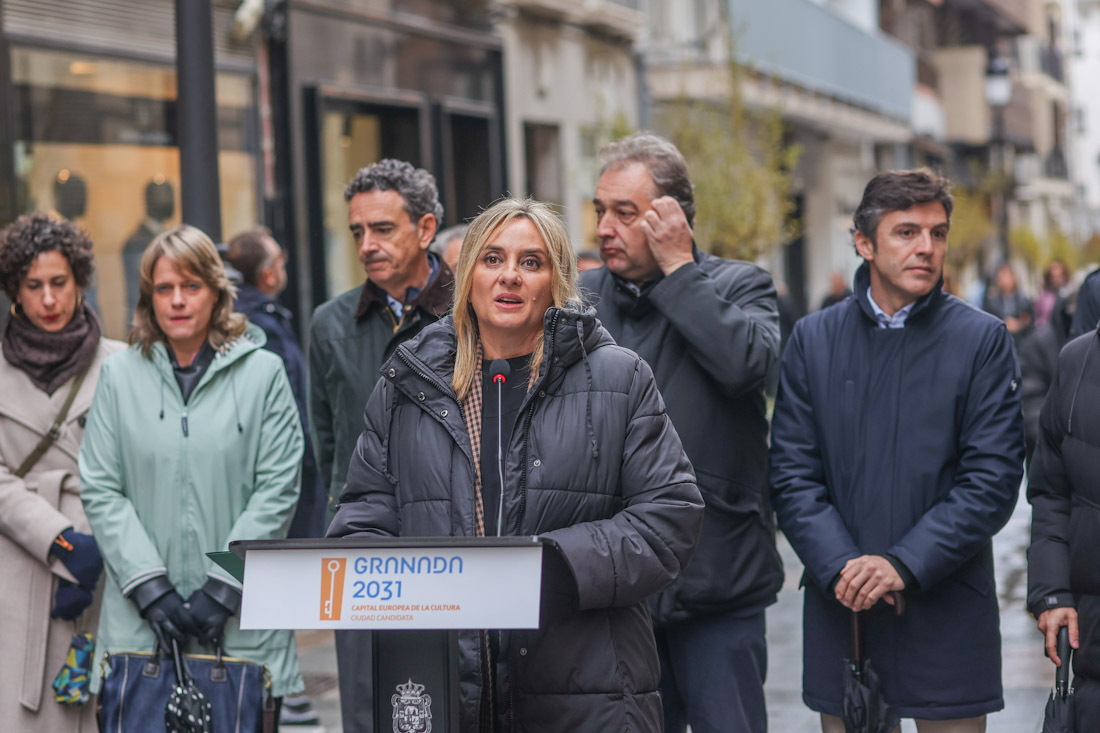 El Ayuntamiento de Granada ha inaugurado este miércoles la remodelación integral de la calle San Antón, convertida ahora en una plataforma única totalmente accesible, con nuevo alumbrado ornamental, 73 jardineras, bancos, vegetación en altura y una solería de granito que embellece este eje clave del centro.