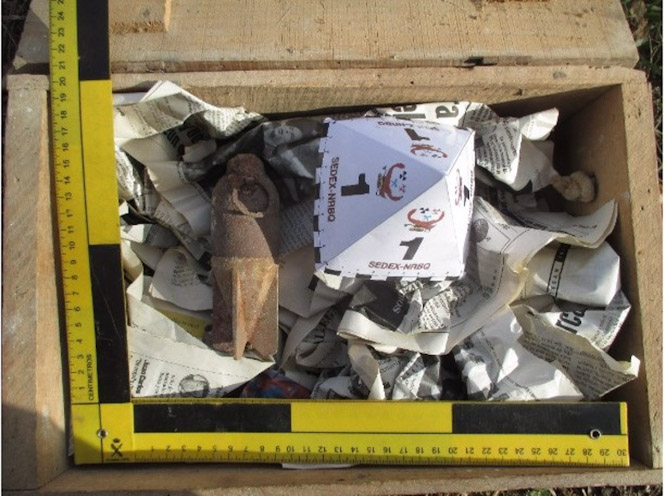 Los agentes del Equipo de Desactivación de Explosivos de la Guardia Civil de Granada se desplazaron al lugar y comprobaron que se trataba de una vieja granada de mortero tipo Brixia de la Guerra Civil, con la espoleta intacta, por lo que su manipulación puede llegar a ser muy peligrosa por manos inexpertas a pesar del tiempo transcurrido.