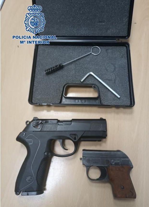 Los agentes continuaron con las gestiones y localizaron en el domicilio de este varón dos pistolas que resultaron ser simuladas y que fueron intervenidas.